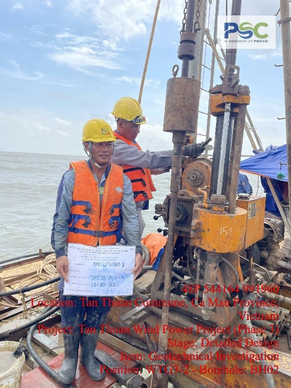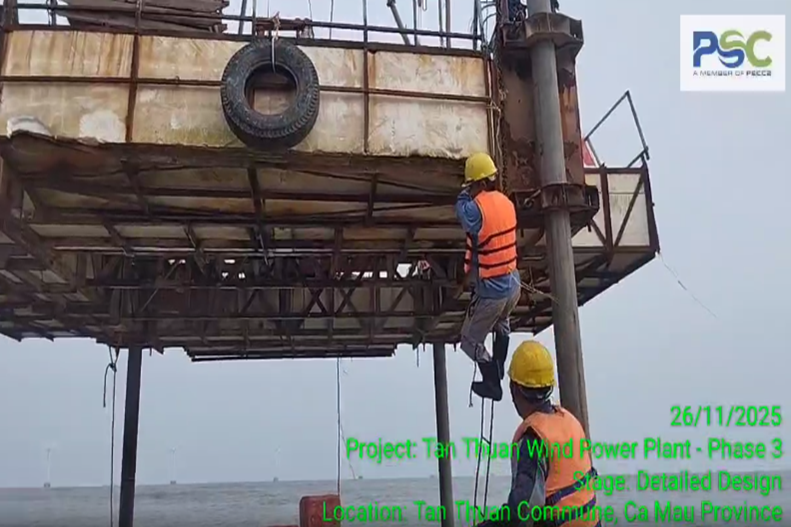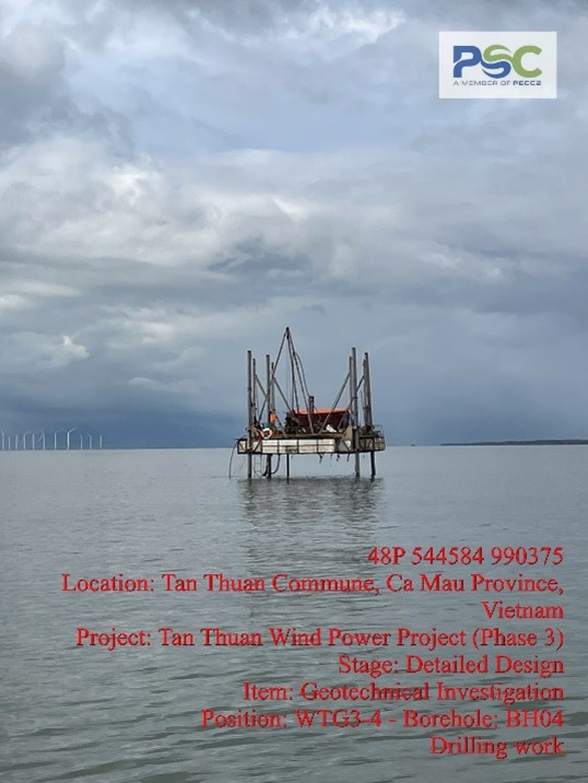 Với kinh nghiệm đã từng khảo sát nhiều dự án điện gió trên biển như: Nhà máy Điện gió Sóc Trăng 7 giai đoạn 2, Nhà máy điện gió Tân Thuận giai đoạn 1 và 2,…….PSC đã lập kế hoạch chi tiết cho công tác khảo sát từng Trụ Turbine khu vực Nhà máy và tuyến cáp ngầm 22kV: